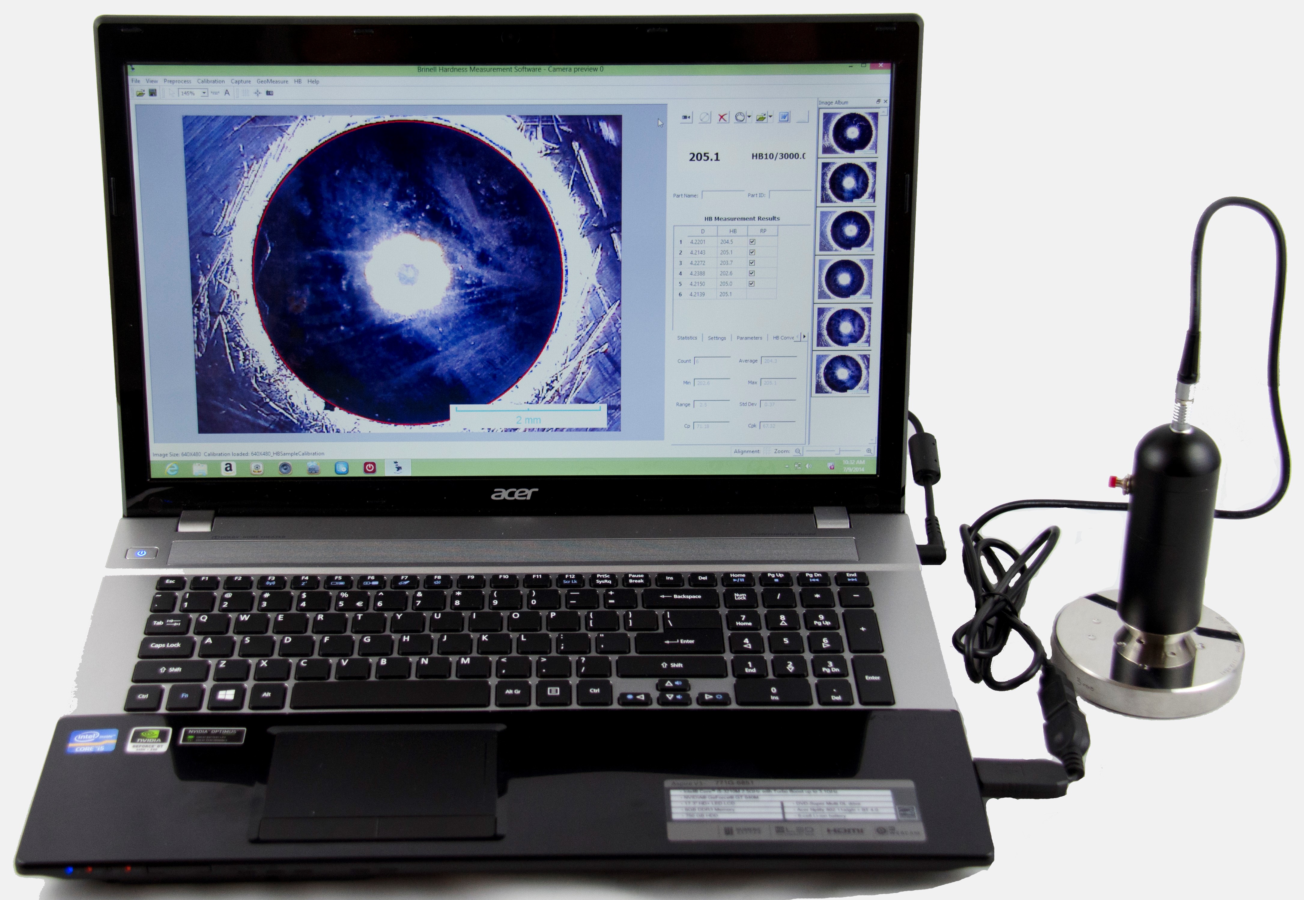 This portable Brinell hardness tester utilizes a 3,000 kg load on a 10mm carbide ball, which is available for reading or re-reading at any time.